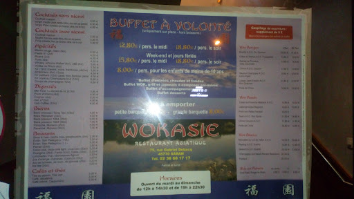 Read moreBonjour, je donne conseil à tout les consommateurs qui compte aller dans ce restaurant Wokasie, je vous conseil de faire attention car la nourriture est réchauffée (crevettes, nems…) des mouches vertes qui vole dans le présentoir de sushis qui se promènent. J’étais avec ma famille, À 19h on a mangé vraiment un dégoût. J’ai poser la question au gérant de cet établissement très mal accueillant n’a d’ailleurs pas accepté la critique il a dit que c’est la nourriture de midi donc faites attention ses gens là ne sont pas là pour la santé des gens mais pour le chiffre d’affaires. Attention attention attention ⚠️ dégueulasse...