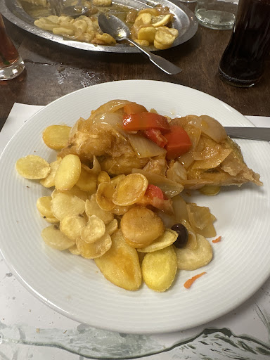 Read moreDéjeuner pour 7 personnes, aux alentours de 12h15. Addition de 98€ pour entrées, plat, fromage, dessert, café pour tous avec un pichet de rouge en plus. Imbattable. Plat qui se « résume » à de la cuisine portugaise, simple mais très efficace ! En photo, hareng en entrée, effiloché de morue en plat pour les uns et jambon braisé pour les autres. Quantité plus que suffisante. En revanche, l’hygiène n’est pas vraiment au rendez vous il ne faut pas être trop regardant voir pas du tout… pour résumé, c’est atypique, « bien » à petite dose avec les 90decibels de nos confrère portugais...