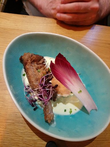Read moreRéservation prise le vendredi pour le dimanche suivant. Déjà les renseignements Google a jour comme quoi l'établissement est ouvert, 1 er bon point. Réservation pour 12h30, nous avons un peu d'avance car le temps n'étais pas clément et nous avions froid. Accueilli même si en avance, et du reste, on s'est sentis les bienvenus ( certains restaurants ouvre le dimanche, mais vous accueille comme un chien dans un jeu de quille). Nous nous installons, et on commande des apéros. Des cocktails maison a 7.5€, très raisonnable, et ils sont bons en plus, servi, et c'est assez rare pour le noté, avec des petite tranche de d pain grillé et un peu de rillettes. Ça change des endroit où il n'y a même pas une cacahuètes avec les apéros. Notre serveur nous conseille de prendre des st jacques, étant donné que c'est la saison. Ma compagne a pris ça, un risotto de coquilles avec st jacques poêlé, et moi une entrecôte frites Rossini. Les plats copieux et parfaitement maîtrisés. Mme a adoré ses st jacques, mon entrecôte avait la bonne cuisson, le foie gras poêlé dessus réussi. Avec ça un verre de vin et il y a du choix ( dans les 5.5€), et nous avons terminé avec un dessert. Crème brûlée maison pour Mme, excellente, bien vanillé, très croquante sur le dessus, et pur moi un riz au lait succulent, a la vanille aussi, servi avec du caramel beurre salé a la convenance. J'en ai jamais dégusté d'aussi bon! Bref, excellente adresse,...