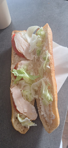 -Le pain est d'apparence cuit correctement mais mou au touché et en bouche, donc pas du matin le sandwich je pense, commence bien.. -Pas de boisson comme j'ai voulu alors que en temps normal il y en a d'après les dire de la personne ( sûrement pas le temps normal alors lors de mon passage ) -Pas de poche pour mettre mes 2 sandwich, ma boisson et mon dessert, tout à la volée comme ça avec les serviettes! J'adore..ultra pratique pour tout prendre sans renverser jusqu'à la voiture.