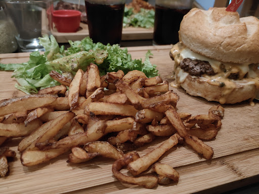Read moreIl y a du + + et du - - : Jaime bien le fait de payer au debut. 20euros le menu est un prix moyen, un peu elevé. carte un peu limitée donc on ne perd pas de temps pour choisir. testé un dimanche et peu de monde (tant mieux pour moi), et les serveurs semblaient sennuyer et surveillaient les clients. pas de hamburger... la salade est bonne. pourquoi pas enlever la salade, et en faire une entrée dans le menu en rajoutant des tomates cerises, parmesan, croutons, oeufs... le supreme de poulet tres bon, et le bout de cuisse est anecdotique, los fait du poids vide. les frites, gros probleme, les patates netaients pas triées, et il y avait plein de noires. mais tres bonnes. beurre original. la mousse chocolat est tres bonne, mais il y avait des petits morceaux dedans assez genant (je ne sais pas ce que ca pourrait etre). le café est tres bon, chaud ou tres chaud mais pas trop. quand je reviendrai jespere que les frites ne seront pas noires. et je testerai un autre plat et dessert. dommage dutiliser du speculos : solution de facilité et moins bon a priori. places de parking suffisantes. planche servant dassiette est une bonne idee (sont elles reutilisées ?). personnel satisfaisant. que 3 etoiles a cause des - - cités, sinon jaurais mis 4 etoiles. malgres ma satisfaction je ne viendrai que rarement dans ce restaurant, mais je recommande aux...