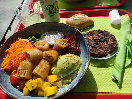 Read moreLa promotion qui avait été faite de ce resto me donnait vraiment envie. Nous sommes venus avec des collègues un samedi midi. La terrasse était pleine, du monde dans le resto. jusque là tout va bien. c'est une jeune femme qui a pris nos commandes (à emporter), efficace, souriante, répondait à nos questions. Et là arrive un homme, la petite cinquantaine, que j'ai pris pour le patron des lieux. il nous a demandé ce qu'on avait pris et a voulu nous encaisser (pour la seconde fois). et a fait passer notre commande en cuisine (pour la seconde fois aussi). il n'a même pas demandé à la jeune femme où elle en était, il a agi comme si elle n'était pas là et la pour ainsi dire éjecter de la vitrine à salades. j'avais de la peine pour cette jeune femme qui était vraiment efficace quand il n'était pas là! il semble qu'il y a des petits soucis de communication dans cet établissement... On a attendu nos commandes 25min (j'avais pris une salade avec du saumon fumé), que j'ai trouvé chère, 13€ pour une poignée de roquette et 4 pauvres bouts de saumon. j'espérais un peu plus de garniture. je ne sais pas si j'y...