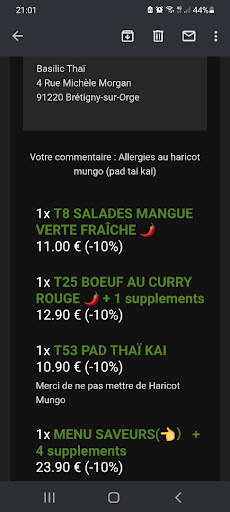 Pas bon, gros défaut d’organisation..je suis très déçue. Nous avons commandé des cocktails sans alcool au final j’ai bu de l’alcool sans le vouloir car ils se sont trompés. Première erreur, ils nous changent le cocktail donc je passe outre ça peut arriver ! Sauf que.. Ce n’était que le début de la plaisanterie.. En entrée j’ai commandé des nems aux crevettes au moment de les «déguster» je croque.. La crevette était molle, visqueuse et surtout grise.. C’était cru.. ils ont oubliés de cuire les nems.. je le signale ils reprennent l’assiette, les minutes passent.. le serveur arrive avec les plats sauf qu’il a oublié de me rapporter l’entrée cuite… il repars donc avec les plats en cuisine. Alors que ma soeur avait finit ses raviolis vapeurs depuis une dizaines de minutes il m’apporte des nems cuit cette fois-ci.. ils n’étaient pas bon les crevettes n’étaient pas nettoyés et fades... Arrivent les plats j’ai pris des gambas au lait de coco et curry avec un riz thaï en accompagnement ma soeur du poulet au caramel avec un riz thaï également.. Ce n’était pas bon les gambas étaient fades avec un arrière goût et le poulet trop gras et mou.. je ne vous parle pas du riz «thaï» qui avait le goût de concentré de tomate et uniquement ça.. FADE à souhait.. De plus la portion est minuscule.. Nous qui avions commandé entrée plat dessert.. nous avons décommandé le dessert trop dégoûtées du repas.. Nous sommes partis le ventre vide.. avec un goût amère… Un geste commercial aurait été bienvenue et sans avoir à le demander évidemment.. Mauvais rapport qualité prix je ne recommande pas.. Trop cher pour ne pas manger correctement.. dommage car l’endroit est propre...