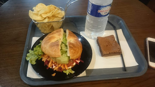 Mon choix : Menu à 9.90€ avec veggie bagel salé accompagné de chips, une boisson et un dessert (attention le cheese cake et gaufre ne sont pas inclus dans le menu - ce n’est pas précisé lorsque l’on commande).