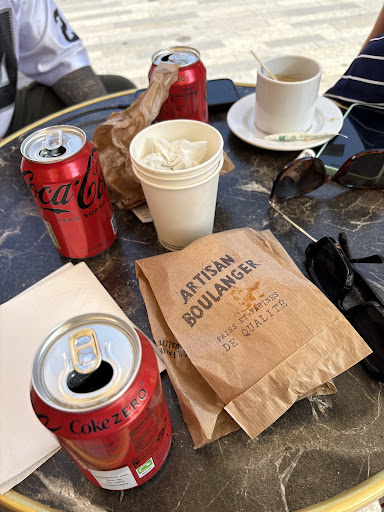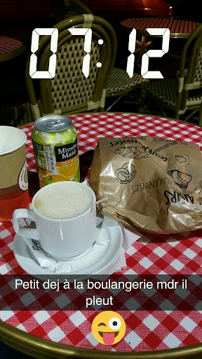Je me suis fait servir un cappuccino ainsi que des viennoiseries sur la terrasse de cette boulangerie. Pour ce qui est des viennoiseries, je n'ai rien reprocher. A peine assise avec mes viennoiseries, je suis envahie par plusieurs guêpes qui rôdent autour de ma table . La serveuse m'apporte mon cappuccino et là une guêpe vient se noyer dedans. Je rappelle la serveuse aussitôt pour lui dire qu'une guêpe est venue se noyer dans mon cappuccino. Un peu fragile de l'estomac , je demande à la serveuse de me le changer.