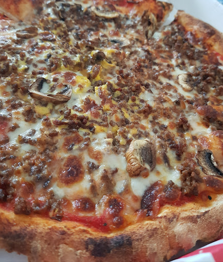 MA PIZZA : une Campione :tomate, fromage, champignons, viande hachée et oeuf. Comme vous pouvez le voir sur la photo elle est superbe (taille junior) et bien coupée, la viande est super bonne et pas sèche, l'oeuf est cuit comme j'aime, si vous l'aimez plus "au plat" mieux vaut le dire avant. Et j'ai même mangé la croute !