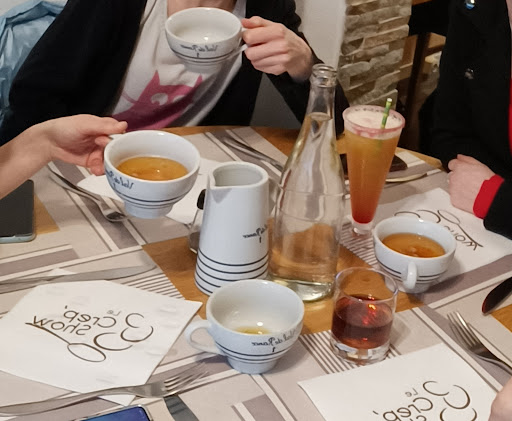 Read moreBon accueil malgré le rush. Service rapide du barman, compréhensible mais peu agréable. Grosse déception avec la galette chèvre-miel : quasi vide, sèche, juste trois rondelles de chèvre, un peu de miel et de la salade sans assaisonnement. Rien à voir avec ce qu’on trouve ailleurs. Pour le même prix, les galettes de mes amis étaient mieux garnies. Résultat : impression de n’avoir rien mangé. En revanche, la crêpe sucrée (banane, caramel beurre salé, spéculos) était très bonne. Dommage que la recette de la chèvre-miel ne soit pas revue, les avis négatifs à ce sujet datent déjà de...