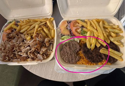 Ordered two Assiette meals, Kebab poulet and Steak, through Uber Eats. Received one full chicken “kebab assiette” and one bitten-“steak assiette”. The shape of the missing piece of “steak” was clearly from the teeth mark, in no way can I see that it’s a piece ripped off. Even if it was a ripped off piece, WHY would you serve a ripped piece?! Thanks to this, I had to waste the entire box of food and only share the one kebab Assiette meal because there is no sane person in the world who will have the stomach to eat from a meal where the meat is delivered bitten off!