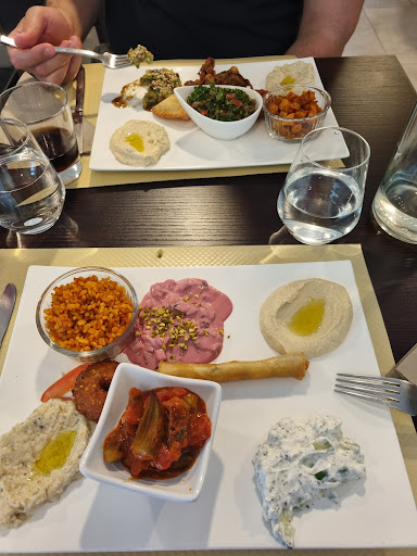 Read moreJ'ai voulu tester ce jeune restaurant avec ma copine avec une offre de 20 % sur la carte hors menu et hors boissons et je suis assez mitigé. Commençons par le vin. Un Ksara 2016 que je sais exceptionnel. Il est gardé tel quel sur une étagère du restaurant donnant à côté de l'entrée qui dispose d'une grand baie vitrée et en ce jour de canicule (35°c) il était devenu particulièrement chaud. Il faudrait sérieusement sur le propriétaire investisse dans une cave à vin car normalement un vin rouge se sert entre 16 et 18°c, 20 grand maximun. Concernant le plat, la qualité est à revoir et on entend régulièrement la sonnerie du micro onde. Le schawarma au bœuf était trop cuit et particulièrement dur. Il n'était pas mauvais mais a mon avis pas fraîchement préparé et réchauffé à la minute. Le reste des entremets froids était aussi trop peu assaisonnés mais restait mangeable. Par contre il faut reconnaître que le gros falafel était incroyablement bon. Il en va de même pour le dessert, l'osmaliyé, même si au départ je voulais un mouhallabieh (flan typique à la fleur d'oranger) mais à 21h20 ils n'étaient pas encore assez pris... Ensuite vient le moment de l'addition au court duquel je rappel que nous avions la réduction la fourchette. Quand je vois le prix, je m'étonne et lui redemande mais bon je me suis dit que j'avais peut être mal compté. Par ailleurs elle me dit que les desserts ne sont pas compris dans la réduction alors qu'ils font partie de la carte et que dans tous les restaurants où je suis allé avec lafourchette le dessert en faisait partie. Une fois payé et sorti, je me rends compte qu'il n'y a qu'une note de carte bancaire et non un détail des prestations. Donc je recalcul et je me rends compte qu'aucune réduction n'a été faite. Donc je reviens dans le restaurant afin d'avoir le remboursement qui s'avère un peu crispé. Peut être était ce du à la gêne lié a son erreur.