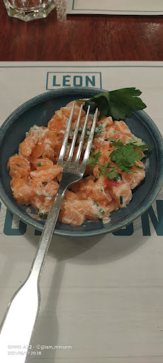 Read more1ere visite à un Leon depuis la fermeture de celui de Montlhery, 2 plats servi non complets (sur3). Arrivés vers 13h15, bon accueil. Lors de la commande on nous prévient qu'il faudra être patient, soit! Le menu enfant arrive assez rapidement c'est un bon point, ce sera le seul complet par rapport au descriptif de la carte. Nos plats (tartare de saumon 16,50€ et salade tataki de thon 19,50€) n'arriveront que vers 14h. Le tartare de saumon : très très léger, correspond à la quantité d'une entrée (moins d1cm de haut) ; juste 2 cubes d'avocat, pas de coriandre ni d'échalotes alors que c'est indiqué sur la carte. Lorsqu'il arrive (plus de 45mn apres la commande), on me prévient que la salade tataki de thon a eu 1 souci et que la cuisine a préparé du saumon au lieu du thon. J'accepte le remplacement mais là, la salade n'a rien à voir : petit pavé de saumon grillé, pas du tout cuit en tataki (donc trop cuit), pas de sésame donc, ni d'avocat, ni de granola salé, ni de coriandre, ni de sauce sésame (vulgaire vinaigrette agrémentée d'une sorte de mayonnaise), sur un lit de salade frisée avec quelques tomates cerise et 2 tranches de fenouil. Ça fait cher la frisée! Quant à la gaufre pate a tartiner du dessert de notre fille : très sèche à l'extérieur, la pâte à tartiner n'est même pas disposée sur la gaufre, c'est une minuscule barquette de pâte trop dure pour pouvoir l'étaler sur la gaufre. Pas certain que la carte fidélité nous serve encore dans cette chaîne, nous regrettons amèrement celui de Montlhery qui jusqu'à son dernier jour d'ouverture à toujours proposé une cuisine à la hauteur...