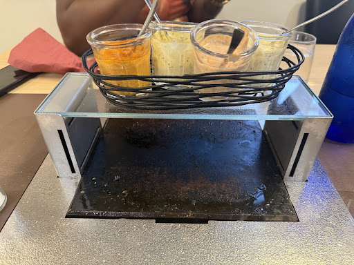 Read moreTrĂšs MitigĂ©eâŠtrop cher pour ce que câest. Il ne sâagit que de mon expĂ©rience. Je vous invite Ă vous forger votre propre avis. Adresse conviviable. Un peu bruyant car du monde, beaucoup de tablĂ©es. Mais ça fait partie du lieu et de son attrait. Il faut juste le savoir. . Ce nâest pas un lieu de rdv en amoureux ou au calme. Les pierrades incrustĂ©es dans les tables, intĂ©grĂ©es, (qui auraient pu ĂȘtre un peu plus grandes mais c est un dĂ©tail), sont une super idĂ©e. Le concept est original. Vous cuisiez vos viandes, poissons, Ă votre guise. Comme un restaurant participatif. Bon point pour mon cocktail DAISY. Il nây avait plus de Mojito. Les desserts sont bons, malgrĂ© un dessert chĂątaigne qui manquait de saveur chĂątaigne Ă mon goĂ»t et une tarte Tatin trop sucrĂ©e (glace LA LAITIĂRE, dĂ©ception dâapprendre quâelle nâest pas faite maison et de grande distribution). Cette sensation de trop sucrĂ© ou de pas assez quand la note reste digne dâun trĂšs trĂšs bon restaurant, ça met un gros bĂ©mol dans la sensation globale. Adresse Ă retenir entre amis, en famille, pour un moment bon enfant , convivial. Câest bon, c est convivial, le personnel est prĂ©sent, attentif, rĂ©actif. Le bĂ©mol: ce nâest pas donnĂ© au regard de ce...