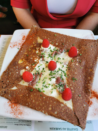 Read moreDîner samedi soir ! Youpi un restaurant déguisé en crêperie…en fait ne vous fiez pas à la carte ..c’est globalement des galettes et des crêpes sucrées..en gros..voilà..alors l’accueil..le serveur..très jeune..fort sympathique..le patron..j’imagine..donner lui les clés de la prison et vous y êtes..aux secours…on a pris deux galettes..une complète 12€50 et une autre je ne sais pas quoi poulet, lardond, mozarella..bref en veux tu en voilà..à 16€..bref…c’est ultra cher pour des galettes..premier point …et second point ça donne pas du tout envie d’en reprendre une deuxième fois..32€ en moyenne pour 2 galettes…nan mais ho🤔…ils attachent leurs chiens avec des saucisses ou quoi la !!!! Pour ne pas tuer le restaurant..c’est correct au niveau qualité…mais par contre ça ne ressemble pas du tout mais alors pas du tout à une bonne galette..à bon entendeur et comme on dit...
