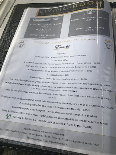 Read moreNous avons passĂ© la soirĂ©e de vendredi 20 nov au living room. Repas professionnel. Nous connaissions dĂ©jĂ et avions apprĂ©ciĂ© Ă chaque fois. Mais ce soir lĂ ! Ressemblait Ă un sketch. Un monsieur un peu enrouĂ© et sympa vient prendre notre commande. Les entrĂ©es, sur 5, quatres reçoivent les entrĂ©es commandĂ©es. Et pour moi le serveur (pas le mĂȘme qu Ă la commande) arrive avec un plateau de crevettes au lieu de 6 huitres. Il repart. Le 1er Mr revient et me dit: "il va vous les prĂ©parer rapidement". Alors que mes collĂšgues ont presque fini leur entrĂ©es je suis obligĂ©e de me lever pour aller me renseigner. En fait mes huitres attendais au bar... Les plats : En commande 2 poissons et 3 cĂŽtes de veau. Le pauvre serveur arrive avec 3 entrecĂŽtes ! Un 3eme serveur revient avec les cĂŽtes de veau... rosĂ©es... personne ne nous a jamais demandĂ© la cuisson. Le 1er Mr n est, malgrĂ© toutes ses erreurs n'est jalais venu s'excuser. Pas d erreur sur les desserts. Juste difficile de manger une rondelle d'ananas rĂŽti Ă la cuillĂšre. Une fourchette et un couteau aurait Ă©tĂ© plus pratique et logique. Pour la qualitĂ© des plats en eux mĂȘme, satisfaction sur les viandes. Mais poisson un peu trop cuit. Avec des lĂ©gumes un peu fades. Cuisson vapeur ? Heureusement il y avait une sauce bĂ©arnaise. Les desserts bons et la chantilly maison excellente. Concernant le personnel, ils sont tous polis et agrĂ©ables. Mais il leur manque des savoirs. Comme par exemple on ne passe pas sa main ou son bras par dessus l assiette d un client pour aller donner au suivant son supplĂ©ment sauce ou sa...