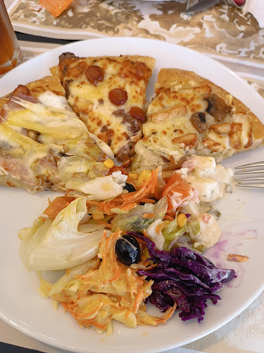Pas toutes les pizzas sont à volonté , au moins il y a à la mozza et végétarienne car le reste c'est carné soit : poulet ,merguez ...