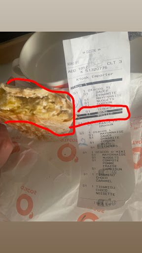 Read moreUn tacos, que dis-je ! Une œuvre d’art, lors de ma dégustation de ce met d’exception, mon âme a pu frôler la perfection culinaire, l’art de la cuisine à la française, le susnommé « French tacos » dépasse en ces lieux toutes abdication ou contre façon quelconque que nous puissions apercevoir ailleurs, chez certaines enseignes fourbes et malicieuses, je souligne le travail et le professionnalisme, ainsi que l’implication dans le service à la clientèle, et le relationnel du jeune Alexys que j’ai pu rencontrer, il nous as offert une expérience digne des plus grands du domaine, je sais qu’aujourd’hui ce jeune homme m’a fait découvrir par sa bonté et son application, le domaine de la restauration. Je remercie chaleureusement le service que l’on m’a offert, et...