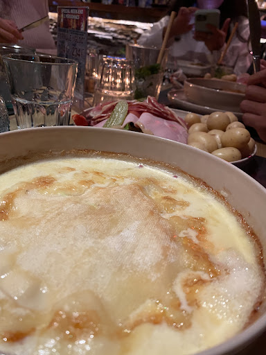 Franchement déçu et c'est cher payé pour le décor qui est en effet sympa. Sinon, pour ce qui est de la partie cuisine c'est vraiment pas ça du tout. Les salades flétries avec charcuterie d'une qualité que l'on ne devrait plus retrouver aujourd'hui dans des restaurants qui disent faire de la cuisine typique. Et que dire des crêpes (menu enfant) avec échantillons de jambon ? L'aspect de la crêpe ne donne pas envie du tout de la manger. Après ce constat je demande de refaire la salade qui était en boule et pas fraîche d'une des assiettes. Le responsable se présente non pas pour dire qu'il est désolé et que l'on ne présente pas des assiettes comme ça, mais pour demander pourquoi cela ne nous convient pas (alors que nous avions déjà expliqué au serveur). Après ça il est parti et dans son visage on lisait l'étonnement. Nous avons conclu (rapidement) le repas car cela n'avait plus de sens pour nous. Nous avons pris des desserts simples (boules de glace et un sorbet) et avons payé (cher, trop cher pour la qualité offerte). Ce n'était pas la première fois que nous étions venus mais nous avons mangé plutôt des spécialités des Alpes mais c'était correct. Mais si l'on ne sait pas faire autre chose que ça dans ce restaurant... Tout le monde est déjà tombé sur des plats qui n'étaient pas franchement au rendez-vous mais nous pouvons admettre des faux-pas. Mais ici il est surtout question de l'attitude du responsable qui n'a pas su dire autre chose que "la salade est de ce matin". Et alors, comme elle est de ce matin tu peux la servir en boule et déglinguée ? En bref, s'il avait eu une autre réaction on aurait oublié ce...