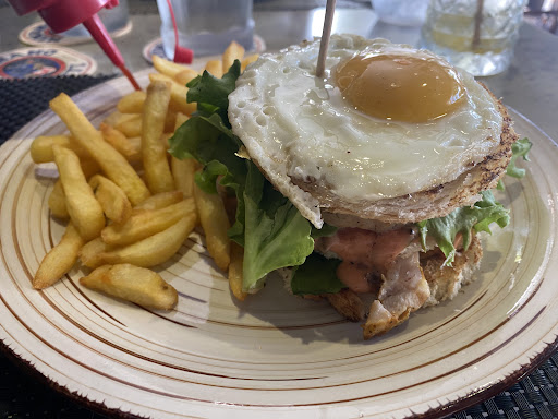 Read moreDefinitely do not recommend eating here!!! Food was terrible. Worst on the island. Ordered a recommendation chicken sandwich ($20 sandwich) it was the worst one I’ve had in my life. I also took my second bite and had a huge bone in my mouth. There’s better places to eat on the island for sure. We just went here because everything else was closed. This might be a good spot for drinks just not food. It was dark meat and the egg was slimy with no flavor or spice, the whole thing had nothing on it actually. Juice was good but I’m sure it was from a carton. We got the crème brûlée thinking that would be better. No ); it was the worst one I ever had. I had to spit it out. I’ve never done that with a desert before. It was really bad.