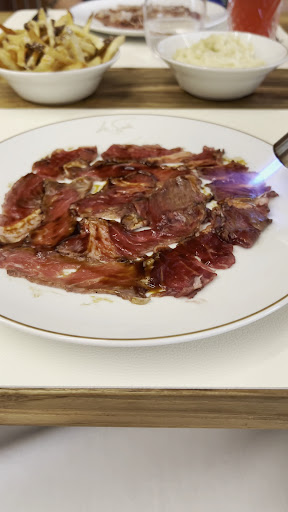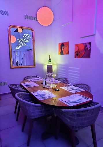 Read moreRepas en amoureux. Une fois entrée dans le restaurant, pas d’accueil. C’est la personne derrière le bar qui nous demande si nous avions réservé. On a donc le choix entre 2 tables. Petit temps d’attente avant d’avoir une tablette comme carte, il fallait attendre que d’autres clients finissent leur choix. Autant l’initiative de mettre une carte sur une tablette est écologique par contre les suggestions ne sont pas bien mises en valeurs et un nombre de tablettes limitées. Nous avons pris un foies gras en entrée à partager, mais seulement 4 petits bouts de pain, obligé d’en redemander. La viande de Wagyu est découpée très finement et cuite en fonction de nos envies au chalumeau directement dans l’assiette, super sympa. Même si manque de dressage et une petite touche de légumes ne serait pas de trop. Le restaurant en lui même est très sympa, une décoration recherchée et propre. Deux boissons, une entrée partagée et deux plat de Wagyu, une addition à 17.500. Un peu excessif mais justifié par des produits de...