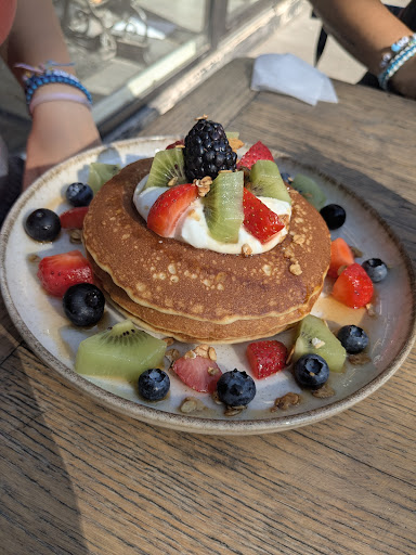 Read moreoh man, I need to leave a review of this tiny little cafe in Paris. It was so good and clean and simple and fresh and delicious. My daughter and I got the most beautiful, small pancakes perfectly matching in size stacked neatly with fresh yogurt dollop and summer berries and syrup. Wife got a yogurt granola fruit bowl that she loved. My chai latte, too, was great even with a lower spice level, fitting for the simple qualities the bakery stands by each day. Real respect held for the chef of...