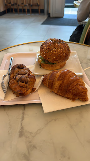 Read moreWas excited to try the real French Croissants made by artisan chef. I wanted to love the experience but as others said all the tables were dirty and fully needed a clean. I do respect that croissants flakes but it was not busy. The coffee is exactly what you need to kick start your day and the flavors of almond croissant are on point.. I had the last one for the day. The Pain au Chocolat on the other hand was also delicious. This is definitely not a sit down and socialize type of place but the food and coffee was nice. I was still jet lagged from my flight from the US and wanted a breakfast sandwich but they emphasised it was only early morning. It’s also pretty pricy for sandwiches...