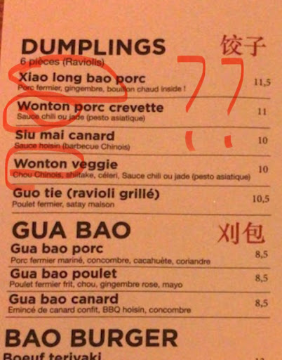 Read more首先食物和服务怎么样都不说,看到这个菜单真的是另所有亚洲人愤怒并且不理解。 Dumplings (饺子)is Dumplings,why under Dumplings options there’s Xiao Long Bao written for dumplings name? Xiao long bao (小笼包 Xiao long Bao/ Bao/ steamed stuffed bun) is totally different thing whith dumplings , xiao long bao is the smaller version of Bao or it is Bao with soupe inside. It’s nothing close to Dumplings or Raviolis. If you make link with dumplings and xiao long bao/ bao zi, I don’t know whether you are extremely lazy or delusional. And don’t even get me started with Wonton. My god. This is totally not respectful for Chinese/ Cantonese/ Taiwanese food culture, you people make dumplings fancy and ten times more expensive than it should be, giving a completely random name is so not the way. Whoever came up with this stupid menu is just too much. You want to make money with Asian food the least you could do is to respect the culture and take the responsibility of spreading the right culture. Just imagine you are in China and you eat in a restaurant where they put the name Croissant for a brioche. JUST IMAGINE. If there’s a jail for inappropriate culture appropriation, you people should be in it forever. BIG...