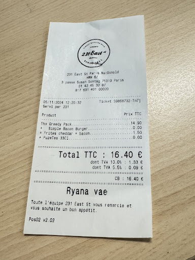 Read moreGrosse déception dans leur restaurant de boulevard MacDonald . Y a rien qui va ni la nourriture, ni le service. La fille, derrière le comptoir pas professionnel du tout. En plus de ça on attend devant les toilettes, elle sort 10 minutes après , parce qu’elle a fait son maquillage. La nourriture, on dirait une nourriture de chien , mal fait , mal présentée et surtout pas bon. J’ai du prendre mon hot dog en photo, Ça ressemblait à rien, et en plus de ça, le goût était juste des oignons brûlés. Je l’ai jeté. On a payé 35 €, on a perdu 35 €!!!! Mon fils s’est étouffé avec le bacon dans son burger , qui était pas du tout bien grillé. Impossible de le mâché , il a avalé, il a commencé à s’étouffer, on a eu la peur de notre vie. Plus jamais je mettrai les pieds, c’était la première et la...