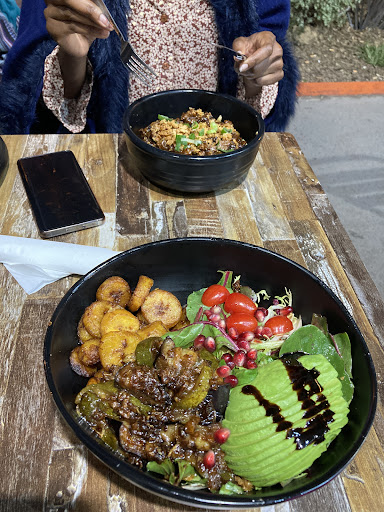 The two continents that make the best foods on the planet unite in a restaurant so what do you expect? You expect tasty street food in large amounts and this place delivered! It was sooooo good and so plentiful! We sat outside on a Saturday night because the inside was loud and full of kids. It is family friendly and can be pretty crowdy for such a small space. The ginger drink is tasty, the straws are bamboo straws, the lady serving us was soooo busy and yet very nice. I ordered what seemed to be the only vegetarian option and replaced the sweet potatoes with some fried plantains: MAMA! 👌🏾👌🏾👌🏾 Looking forward to...