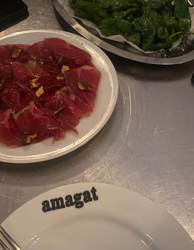 Quoi essayer: Secreto Mojo Rojo 21 euros Où : 23 Villa Riberolle, 75020 Paris, France Amagat sites in the 20th area is a tapas restaurant in a hidden alley. Amagat means hidden in Catalan so this name choice was not a coincidence. The restaurant welcomes you with its garden which is lovely and the interior is charming. Their idea was to bring Catalonia to Paris, in the most authentic way. It is the sister restaurant of the famous Cache, which locates just next to it in Villa Riberolle. The printed-off menu is full of Iberian creations. The classic Catalan dishes are modernized with an Ibiza touch, says their chef. Some of the products change depending on the season, as well as wine carte which has unique options. The famous Barceloneta bomba is very popular and has its own versions now. We started with tortilla la morcilla, a Spanish omelet, and pımentos del pardon salted green peppers. Two different types of charcuterie were very tasty, even for the ones who find it very greasy usually. The meat was paper thin and very savory. The leaner lomo has a rich flavor. The patatas bravas were blended with spicy aioli and hot tomato sauce, such a classic! The form of patatas was changed to tiny ones, it was a bit difficult to have the sauce on it I prefer the old version. Chuletas de Cordero, made of lamb comes with white onion puree and was worth trying. Secreto Mojo Rojo was the star of the meat section, It is a dish made of Iberian pork chops grilled and served with a garlicky red pepper sauce. What to Try: Secreto Mojo Rojo 21 Euro Where: 23 Villa Riberolle, 75020...