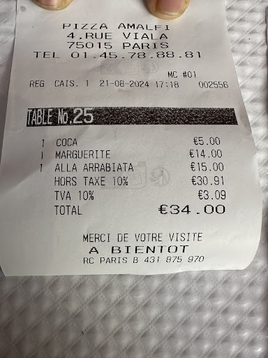 Literally the worst "Italian" restaurant I have ever been to in my life. Firstly, the service was horrible. We arrived before closing time to a rather empty restaurant, and the server made it seem like he was doing us the world's biggest favor to seat us. But the worst part was the food. The pasta in the photo that I ordered almost made me gag before I had even tasted it - I could smell the rotten cream as the food was placed on the table. I understand that in France, people use creme fraiche for some pasta dishes, but one should probably advertise that at an Italian restaurant with the name Amalfi...I have been to Amalfi and there is zero correlation between the food here and there. However, this creme was completely spoilt - there was a putrid, sour taste to it. I had only a few bites (I was starving after a long day of flying and travel), and couldn't muster up the stomach for anymore. My stomach immediately felt horrible (note other reviews warning of food poisoning as well) the rest of the night. I literally downed a couple shots of vodka right afterward to try to kill whatever bacteria was in the food. Please be warned of both horrible tasting and horrible...