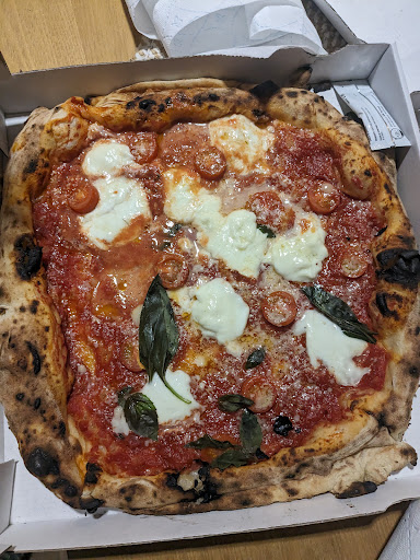 Read moreAvis mitigé. Pris à emporter et dégustée rapidement, ma pizza n'en était pas moins trop mouillée si bien que le coeur se détachait ou collait au carton. L'aubergine était cuite mais pas grillée ou pas assez. La pate était trop brulée aussi ce qui n'est pas bon et pas sain. Après la pate justement a un bon gout (pour les parties non brulées), la sauce tomate aussi, on percevait les notes d'huile d'olive. En résumé une pizza bonne sans plus que je ne déconseille pas mais qui n'est clairement...