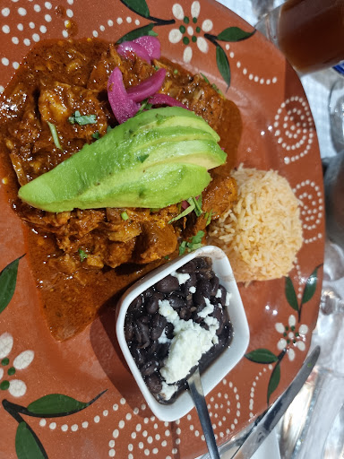 Anahuacalli's chicken enchiladas covered with authentic Oaxaca melting cheese are a main dish by themselves.