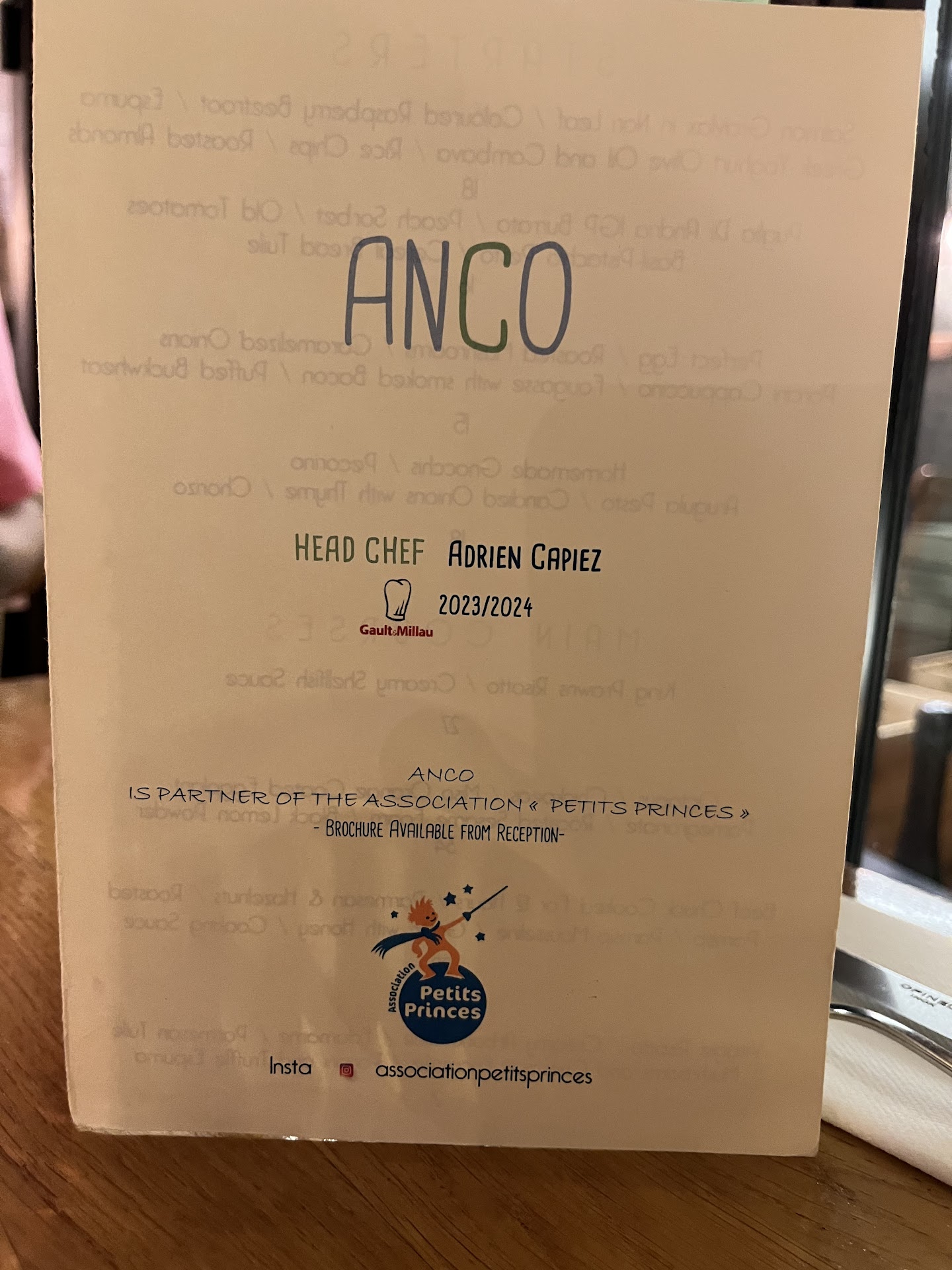 i dont usually do reviews but this restaurant made me reeeeally happy! i was there with friends and we ate a lot and spend the perfect price proportioned to the quality. everything is delicious i could find a single flaw or thing i wanted different in the food. i've been far from my home country (italy) for a few months and i was missing the food because being a tourist of course is really different, because you dont know what you find and where so i tried a lot of times to have a good lunch/dinner and i struggled to find places about which i could say "this is really good". anco is the first place that didnt make me miss home! the quality is perfect, who works there is really kind and polite, and also they have lunch deals that are quite cheap and you get reeeeeally good food! i think one of the best places i've ever been to in my entire life for some reasons that make me really satisfied. good job!! if ill be back in paris ill make sure...