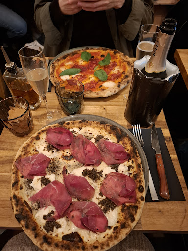 Food was amazing, we both had pizza. The crust is very crispy. Be aware when you order the pizza truffle, the flavors are amazing, pizza is getting quickly cold, so if youre bothered by that, read the menu, because it's due to the cheese they put on afterwards. I still recommend this amazing pizza! Because i didn't mind and it was amazing.