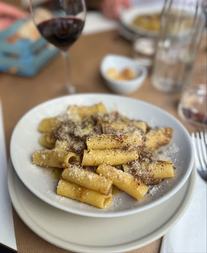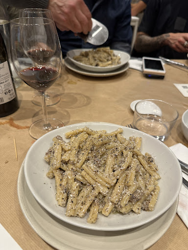 Now (3 years later I came back here because of an event organized by my company), I still find the portions very small, the pasta very oily, even more expensive and not worth the price (150gr pasta for 20€). The menu still only in Italian and not very clear, the deserts not very tasty. The spritz aperol was good though, the service friendly, but the decorations are very disturbing: nudity drawn in black perm-marker on a transparent plastic sheet all over the wall and on the table serving as a table mat... 😱 And the inside is very hot and humid, we were all suffocating and sweating, and as it is a small space and people speak quite loudly, it became quickly a...