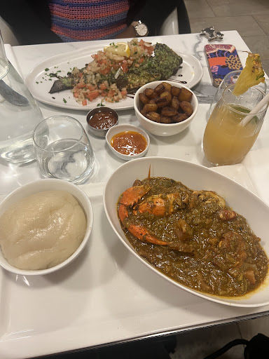 Read moreJe suis allĂ©e dĂźner samedi 3 octobre 2020 dans ce restaurant. J'ai commandĂ© un choukouya des bananes plantains et de l'attieke et mon conjoint le capitaine piquĂ© braisĂ© avec du riz rouge tchiep. Nous Ă©tions 4 et l'autre couple avec qui nous Ă©tions ont commandĂ©s la mĂȘme chose. Le poisson apparemment n'Ă©tait pas bien assaisonnĂ© mais ils ont apprĂ©ciĂ©s tout de mĂȘme leurs repas grĂące aux rehausseurs de goĂ»t arĂŽme Maggi et piment. Pour ma part, le choukouya Ă©tait trĂšs bon cela dit dans mon attieke j'ai retrouvĂ© un cheveu noir qui ne pouvait pas ĂȘtre le mien car j'ai des mĂšches blondes!. J'avais aussi commandĂ© un coca zĂ©ro et le serveur m'a emmenĂ© un verre avec une paille bourrĂ©e de glaçon. J'ai versĂ© une partie de mon coca dans celui-ci et en entamant mon verre j'ai constatĂ© qu'il y'avait de la poussiĂšre dans mon verre. Pas une petite, mais un gros truc. LĂ c'Ă©tait trop pour moi. Du coup, jai appelĂ© le serveur pour lui montrer mes trouvailles. Pour le cheveu dans l'attieke, il faisait mine de ne rien voir et j'ai dĂ» approcher le plat d'attieke et lui montrer le cheveu noir entremĂȘlĂ© dans les grains de manioc. Il a fini par me dire que le manioc venait du bled et que celui-ci n'Ă©tait pas prĂ©parĂ© sur place! Mais cette info en tant que cliente je m'en fiche. Je veux manger et boire sans dĂ©sagrĂ©ment. Je paie tout de mĂȘme un service. je lui ai aussi montrĂ© la saletĂ© dans mon verre et lĂ confus il m'a emmenĂ© un autre verre. Le verre toujours bourrĂ© de glaçon avec une paille. LĂ je le remercie et il part faire son service . Je prends le verre et lĂ vous imaginerez mĂȘme pas ce que j'ai vu. Le verre Ă©tait trĂšs sale, et le contenant glaçon avec des dĂ©bris de menthe ou que sais-je encore. On avait l'impression que quelqu'un avait bu dedans et que celui-ci m'a Ă©tĂ© donnĂ©... j'exagĂšre certainement en disant cela mais lĂ vraiment c'Ă©tait trop. Je demande Ă mon conjoint d'appeler Ă nouveau le serveur. Et je lui fait remarquer que le verre est sale et lĂ j'ai le droit Ă de la saletĂ© Ă l'intĂ©rieur. Le pire c'est que celui-ci se justifiait en voulant me montrer que le verre Ă©tait Ă l'endroit des verres propres mais il n'a pas su m'expliquer la saletĂ© dans le verre (feuille de menthe ou je ne sais quoi d'autres). J'ai fini par terminer mon coca Ă la bouteille. Je n'ai pas mangĂ© l'attieke et j'ai fini mon choukouya et mes bananes plantains. Je vous laisse pas imaginer mon Ă©cĆurement. Heureusement que la viande et les accompagnements ne sont pas servis dans la mĂȘme assiette. Pour ma part, je n'irai plus lĂ -bas. Le service Ă©tait mĂ©diocre et ils n'ont aucun sens du service. La satisfaction client ou l'expĂ©rience client ne fait pas partie de leur leitmotiv et cela est bien dommage. Aucun geste commercial et les excuses n'y Ă©taient pas nous avons payĂ©s l'addition plus de 200 euros pour boire de la poussiĂšre et manger...