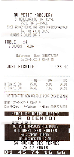 Read moreWe have been visiting Paris every year, except for the pandemic year, since 2007. Frankly, for the last couple of years, we've been here for three months of the year. We've been eating at Au Petit Marguary once every year for ten about years. You can tell that we like the restaurant. I'm here to sound a note of concern. Tonight, the food on offer was just not up to the standard tgst we've previously come to enjoy. My gravlax entree was interesting enough. I liked the fusion between the gravlax and the asian inspired beansprout and cabbage salad that accompanied it. My wife's cereal of asparagus soup was, according to her, very good. However our plats, we both had the veal rib, was pretty awful. The meat was almost cold. What the low temperature do was to make eating the rather fatty cut of meat, unpleasant. The pureevof sweet potato was good but the rib was supposed to be the star of the show. I should have said something but I didn't and for that, I'm sorry. I hope that this disappointment was just a one-off. We will eat at the restaurant again, when we likely return to Paris in September. I’ll post an update. In the meantime, Au petit Marguary, here's hoping that you will dazzle patrons...