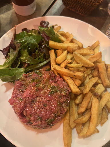 delicious food, we both ordered the tartare and it was perfectly seasoned + home made French fries very quiet street so very enjoyable to be seating on the terrace last but not least, this place is very kids friendly - super helpful with our daughter + provide a baby chair or booster depending on your needs. Quite nice...