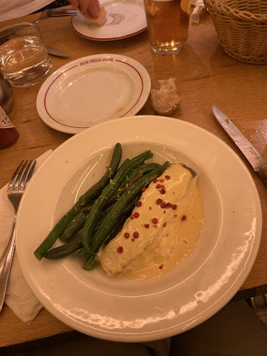 The atmosphere at Aux Deux Amis is lively and bustling, and the wine was truly delicious. Unfortunately, the service left a lot to be desired.