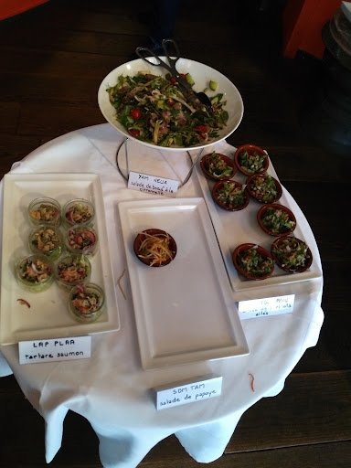 Read moreBrunch du dimanche midi. Très belle découverte. Petit restaurant thaï niché sur les quais. Accueil très chaleureux, service impeccable, personnels aux petits soins. Tout d'abord boissons à volonté: thé au jasmin, café, jus d'orange, jus de goyave et jus d'hibiscus. En entrée, quatre petites salades très bonnes et parfumées. Des saveurs plein la bouche. Pour accompagné cela, des nems poulet, crevettes et légumes, brochettes de boeuf et de poulet. Sauces nems, cacahuètes et gingembre. En plat, poulet curry, crevettes curry, poisson, porc au caramel. Les plats étaient vraiment succulents, seul le porc au caramel nous a déçu, trop sec pour nous. En accompagnement, riz, légumes, nouilles, accompagnement parfait pour les plats proposés. En plus, soupe et ravioli vapeurs (nous avons pas goûté la soupe et les raviolis étaient secs). En dessert, une multitude de dessert. Très bons et surprenants. Le bonus, la mangue a volonté. Un repas...