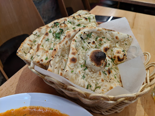 The Garlic Naan is a delightful companion to these dishes, with its soft, pillowy texture and a generous smattering of garlic that's neither overpowering nor timid. It's perfect for sopping up the rich sauces of the main dishes.