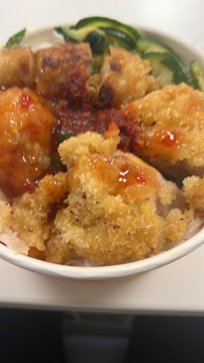 Read moreNous sommes passés par hasard dans la rue Mollien et avons été très intrigués par l’énorme file d’attente. Nous y sommes rentrés pour y prendre leur menu qui par ailleurs est très joli. Nous y sommes allés le lendemain pour tester car nous avons été conquis par leur menu. Nous y sommes allés un peu avant 12h00 pour éviter le monde et avons bien fait, quelques minutes après il y avait une quinzaine de personnes derrière nous. Nous avons très bien été accueillis par le personnel. L’homme qui m’a servie et a composé mon plat était top, très agréable, souriant et à l’écoute. J’ai pris le riz gluant qu’il m’avait suggéré avec le poulet croustillant et des légumes. Les poulets sont tous halal. Le plat était parfumé et très copieux, trop pour moi mais parfait pour ceux qui ont de l’appétit. Le dessert billes de tapioca au caramel pas trop fan mais ce n’était pas mauvais. Tout était parfait, Bôl mérite...