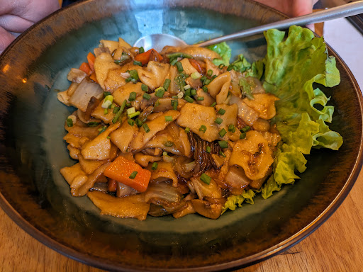 Read moreMon dîner était parfait : les soupes originales en entrées sont vraiment bon marché (j'en ai goûtées 2 du coup) et les momos sont juste parfaits et faits "en live" dans la cuisine ouverte sur la salle. On vous dit souvent de faire attention parce que le contenu des momos est très chaud mais là, il s'écoule 5 secondes entre leur confection et leur arrivée à table et ils sont carrément brulants. Ce n'est pas un problème car ça permet surtout de les manger lentement parce qu'ils mettent beaucoup de temps à refroidir naturellement. Le thé tibétain se boit autant qu'il se mange car il est plein de fruits et de fleurs séchées comestibles. Aussi beau que bon et servi avec sa cuillère de dégustation. Le croirez-vous : 27€ pour 2 soupes, 1 thé tibétain, 1 pain tibétain, 1 assortiment de 8 momos et 1 dessert tibétain. Introuvable ailleurs à Paris et la qualité va au-delà du prix. Pour parfaire le tout, l'accueil...