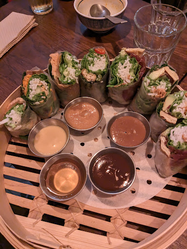 Read moreJ'ai commandé à emporter et donc ne peut pas juger le service ni l'ambiance. Par contre, pour ce qui est de la cuisine, je m'attendais à mieux, c'est passable en terme de goût et ne vaut pas le prix. J'ai testé 4 rouleaux: crevettes, saumon, porc citronnelle et cha ca rouleau du moment + la soupe tom yum. La soupe tom yum manque de goût, on a l'impression qu'elle est faite avec de la poudre instantanée. Concernant les rouleaux de printemps, la galette de riz était assez épaisse, dure et manquait d'élasticité, c'était assez désagréable à manger sur les extrémités des rouleaux. On trouve beaucoup mieux comme galette de riz, c'est dommage pour un resto spécialisé en rouleaux de printemps. Le rouleaux à la crevette est passable. Le porc est sec et on ne sent pas du tout la citronnelle. Le cha ca est le moins bon de tous, on ne sent pas du tout le poisson et on a une pâte en bouche sans gout qui est assez désagréable en terme de texture. Le saumon était bon et bien garnis. Les...