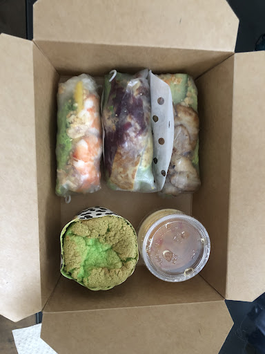 Read moreTasty and delicious home made spring rolls Pandan sponge cake a big dry but good! Easy to eat and very affordable menu for lunch during weekdays ! 💖 The veggie one is amazing!!!!! (Got to try the shrimp and pork ones as well, so good!) Friendly staff and very cute place (I took my meal away though) Will definitely go...