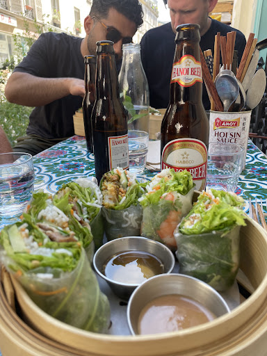 Read more4 out of 6 stars would mighr be my choice if possible. A nice little spot away from the large roads. A friendly staff member who made a table outside possible even though they had limited space. Had an overcooked âRibs aux 5â in a nice sauce as a starter before diving into their fresh spring rolls. Had three, sliced into halfs (crevette, porc citronelle and white fish) Tasted decent and fresh, but they should have have more crunch, and power in the tastes and less romaine salat) Would come back for the staff and...