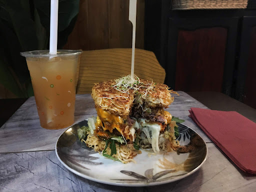Restaurant spécialisé dans les burgers asiatiques dont les deux chefs sont laotiens, ouvert il y a environ trois mois, et situé dans le 9e arrondissement près de Poissonnière. Le concept se trouve être très intéressant. Le restaurant est petit mais sur deux étages et propose toute une gamme de burgers variés, avec des pains allant du black bun au bao burger en passant par le ramen burger, des garnitures aussi bien à base de bœuf que de thon ou de crevettes frites et différents fromages comme le cheddar, le chèvre ou le gorgonzola. Je vous épargne les accompagnements originaux en dehors des frites (que j'aurais bien prises si je n'avais pas été dans un autre restaurant 5 minutes avant 😅 ). Il y a également un choix intéressant de boissons dont principalement les bubbles tea.