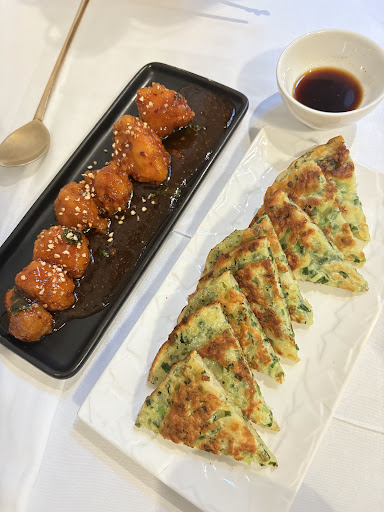 파리에서 먹을 수 있는 한국음식의 유형에는 크게 두 가지가 있다. 전통적인 한식의 문법/상차림을 따르는 식당과 현대적인 조류에 무관심하지 않으면서 현대적인/프랑스적인 맥락들을 적용시키는 식당. 대부분의 한국식당이 전자의 경우에 속하나, 이 유형에 속하는 식당들은 불행히도 한식이 다다를 수 있는 가능한 가장 낮은 수준을 보여준다. 많은 이가 공감하겠지만, 프랑스에서 먹는 한국음식을 먹는다는 것은 고국의 분식집에서 내어올 법한 수준의 음식에 만족해야 한다는 사실을 의미한다. 한인인구가 많고 그래서 한인을 대상으로 한 상권자체가 잘 발달되어 있는 미국과 사정은 완전히 달라서 프랑스에서 많은 한식당은 자기만의 특색있는 메뉴 자체가 없거나, 있다고 해도 변변찮은 경우가 대부분이다. 어쨌든 이 식당은 소수인 후자의 경우에 속한다. 주인의 말에 따르면, 메뉴는 한 달 간격으로 조정하는데, 그렇게 해서 그때 그때에 맞는 식자재를 토대로 메뉴를 구성한다고 한다. 메뉴는 전형적인 한식으로 구성되어 있다. 육회, 오징어순대, 수육과 겉저리, 찌개 백반 등. 한 주 동안 두 번을 방문했고 각기 다른 음식을 먹었다. 첫번째 방문에서는 아귀찜과 오징어순대를 , 두번째 방문에서는 대구탕과 춘권을 먹었다. 결론부터 말하자면 상당히 놀라웠다. 앞서 말한 것처럼, 이 식당의 메뉴 구성은 전형적인 한식을 크게 벗어나지 않는데 그럼에도 불구하고 그것들을 조리하는 방식이 진부하지 않았다. 아귀찜을 먹는다고 생각해보자. 우리는 시뻘건 고춧가루 양념 범벅의 콩나물찜에 곁들인 아귀 몇 조각을 먹는 것에 그친다. 그리고 전분물을 풀어넣어 텁텁한 고춧가루 양념에 밥을 비벼먹는 것에 익숙할 것이다. 하지만 이 식당은 그런 관습에서 기인하는 우리의 관성적인 기대를 충족시키는 대신에 다른 방식으로 우리를 사로잡는다. 적절한 신맛이 있었다. 약간의 김치국물 같은 것에서 오는 신맛이었는데 거슬리기는커녕 맛의 균형이 잘 잡혀있다고 생각했다. 한국음식은 신맛을 적극적으로 사용하는 것을 저어하는데, 이 주방장은 모험적으로 신맛을 적극적으로 전면에 내세웠고 나로서는 퍽 만족스러웠다. 프로방스식 아귀꼬리요리(레몬즙, 레몬 조각, 토마토 소스, 모두 신맛이 주를 이루는 재료들이다)를 먹는 것 같은 생각이 들었다. 요리한 이가 의도했든 그렇지 않든, 서양식 아귀요리의 중요한 특징들을 한식에 잘 적용한 것 같은 느낌이었다. 또한 아귀찜에는 산더미같은 콩나물 대신에 적절한 양의(음... 사실 조금 모자랐다) 콩나물과 몇 가지 낯선 채소들이 있었다. 채썰은 홍피망, 청피망과 쪽파, 마늘쫑(?) 등이 있었는데 은근한 단맛과 신맛이 잘 배어나왔다. 또 하나 인상적인 것은 넉넉하게 넣은 꼬막이었다. 양념이 잘 배어들어 있어서 매우 맛있었다. 한 가지를 지적하자면 익힌 아귀살을 마지막으로 채소와 양념과 볶아낼 때 충분히 볶지 못해서인지 부위에 온도차가 조금 있었으나 크게 거슬리는 것은 아니었다. 두번째 방문에서 먹은 대구탕에 대해서도 말해보자. 이 또한 굉장히 잘 만든 요리였다. 알다시피 반건조 대구가 아닌 이상 대구라는 생선은, 고등어나 여타의 등푸른 생선과는 달리 그다지 강한 맛을 가지고 있지 않은 식자재이다. 그렇다면 어떻게 맛을 끌어낼까? 두 가지 방법이 있다. 하나는 생선을 가리고 양념으로 맛을 벌충하는 선택이 있다. 파리의 여러 식당에서 대구탕을 하는데, 대부분의 경우는 매운탕을 내어놓는다. 왜? 속된 말로 '캄푸라치'하려는 것이다. 다른 이유라면, 가학적인 한국인의 매운 맛 사랑을 만족시키기 위해서일까? 또 다른 선택지는 소위 '우마미'라고 하는 감칠맛을 내는 다른 식재료을 더함으로써 대구맛의 빈 공간을 채우는 것이다. 이 집은 맑은탕을 내면서 두 번째 방식에 의존하는데 이 또한 나는 훌륭하다고 평가한다. 프랑스에서 구하기 쉬우면서 감칠맛을 내는 재료가 무엇일까? 홍합. Chez Léon에만 가도 저렴하게 먹을 수 있는 식재료. 주방장은 홍합을 넉넉하게 넣는 것에 그치지 않고 여러 향신채소들을 더해 맛의 층위를 더했다. 콩나물은 역시 좋은 선택이다. 그리고 깻잎(시소)향도 느껴졌다. 대담하고 명민한 시도라 생각한다. 내가 겪은 두 음식으로부터 내가 내린 결론은 이 식당은 '여러가지 맛을 훌륭하게 조합할 줄 안다'는 것이다. 파리에서 괜찮은 한식을 먹고 싶은...