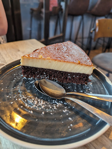 After the tacos we got the chocoflan. This is a traditional Mexican desert and it's fantastic - rich chocolate cake with a bouncy, sweet flan on top. We got a massive slice, I don't know if they are all this big but it was enough for two!