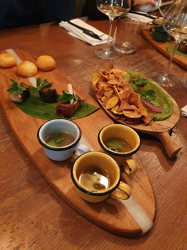 Read moreStaff at this restaurant are shameless scammers. I received a gift certificate for a 10-course tasting menu at this place. We went there last night (with a reservation, so they knew we were coming and knew we had the tasting menu certificate). We received: a fish appetizer, a small appetizers tray (two tiny pieces of chicharrón, two empanadas, two tacos, two pieces of yuca bread… all bite sized), one beef dish, one fish dish, and dessert. After this, our server happily announced the meal was over. When we pointed out we actually had the certificate for the 10-course menu, she said "well yes, that was 10." When we pointed out it was actually 5 (or 8 if you were being really generous and counting every element in the appetizer tray as a separate thing) she proceeded to count them herself. She obviously counted up to 4 + dessert. Then she just looked at us, as if we were going to suddenly be satisfied with her answer. At this point we decided this was not worth it, as the food quality was quite mid and we were not willing to spend the rest of our evening arguing with the restaurant staff, so just got up to leave. She never said she would perhaps check with her manager or the kitchen, apologized or even asked us to wait. Afterwards I checked other reviews here and those of people who had also had the 10-course menu looked very different from what we received (unfortunately I didn’t took any pictures). All in all a...