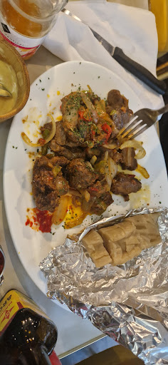 J'ai choisi comme plat la grande spécialité de la maison, à savoir l'agneau braisé, que j'ai accompagné d'aloko, c'est à dire de bananes plantin frites. Dans le choix des accompagnement, il y avait l'attiéké, semoule de manioc qu'à pris mon ami Vincent, ainsi que le bolobo, bâton de manioc au goût très spécial que m'avait fait découvrir mon amie Sandra Emouk au restaurant "Le Lion Indomptable" et que je n'arrivais à apprécier qu'avec beaucoup de sauce, j'en aimais plus la texture que le goût, mais peut-être me fallait-il du temps pour m'habituer à cette saveur pour le moins dépaysante. Je n'ai pas pris de risque pour cette première fois à "Bisso Na Bisso". Vincent a opté pour une daurade braisée et Magda pour l'inconditionnel poulet braisé. 😎